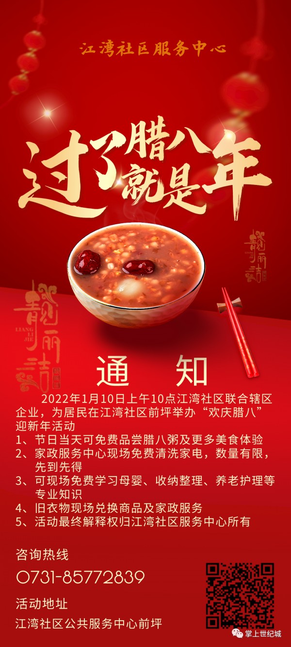 农历十二月初八是中国的传统节日——腊八节。腊八是春节的前奏曲,为了传承腊八节的传统习俗,营造节日的欢乐气氛,江湾社区特联合辖区企业组织开展 “欢庆腊八·喜迎新年”活动。能让辖区居民们认识腊八节,感受传统节日带来的温暖和快乐,增强大家热爱中华优秀传统文化的情感。
